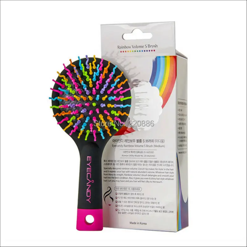 Premium Rainbow Volume Brush Korea Style Magic Hair Comb Paddle Brush with Mirror GIC-HB503 Colorful Bristl