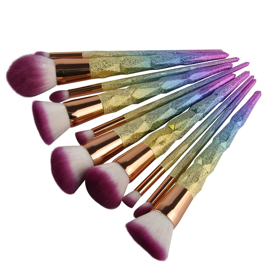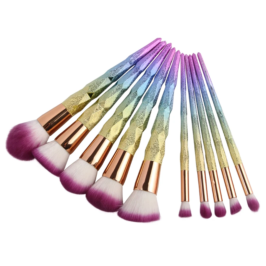 Pre-owned 10pcs/set Rainbow Hair Diamond Cosmetic Makeup Brushes Set Foundation Eye shadow Blusher Unicorn Bl