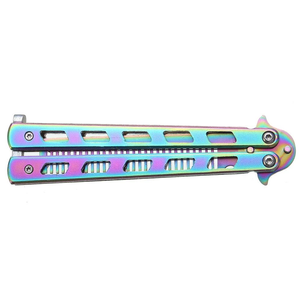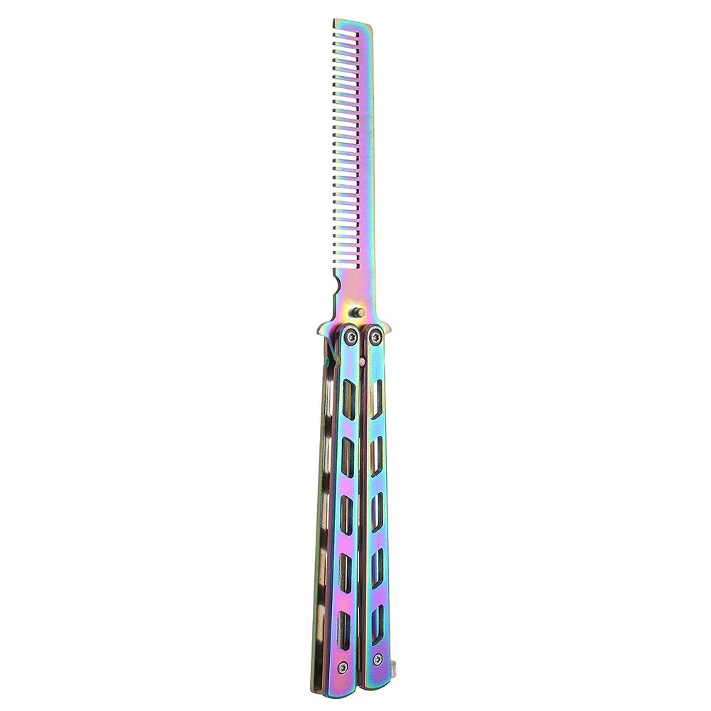 Cashback Foldable Rainbow Comb Stainless Steel Practice Training Butterfly Knife Comb Beard & Moustache Brus