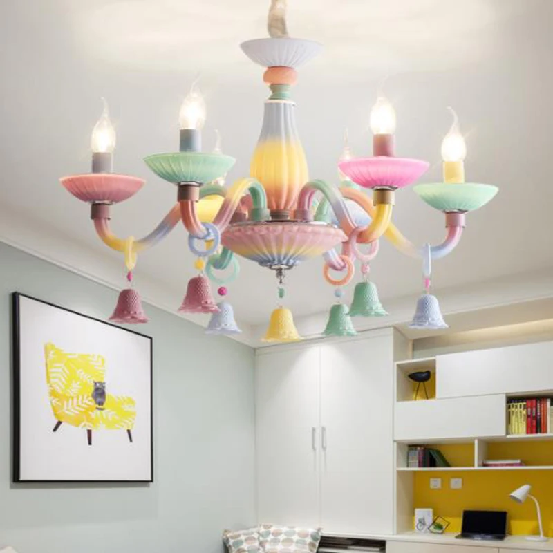 Expensive Macaroon rainbow LED crystal chandelier lights girls' bedroom colorful LED drop lights romanticgrad